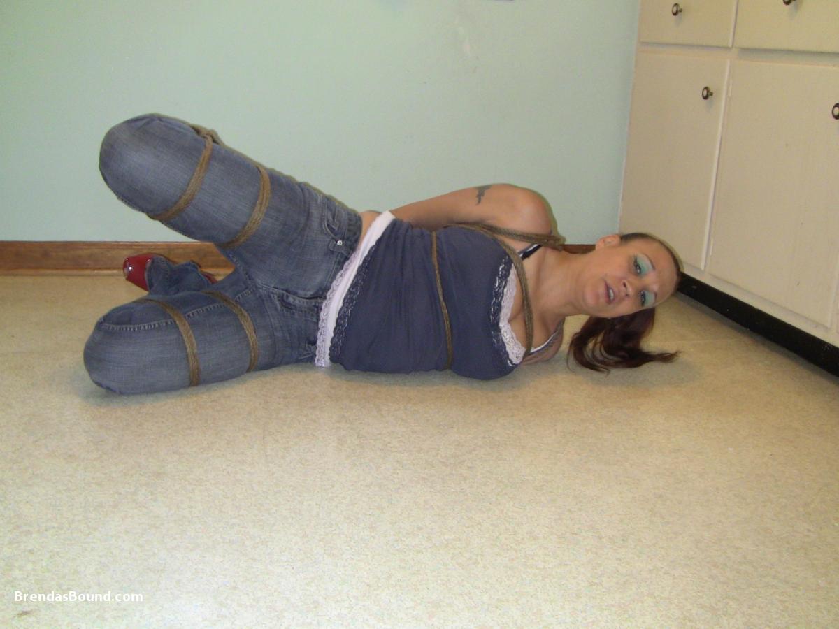 Brenda is in for it this time. Hogtied on the Kitchen floor while they went through her house. When they was done they thought it was fun to just keep adding rope.