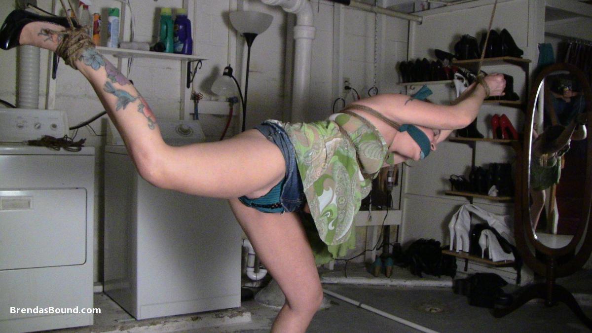 Once again Brenda was being her smart ass self. Running her mouth and doing her chores around the house. It was time for a little lesson. Bound in the basement predicament stile. Stretched out on on leg and left to think about what she had done.